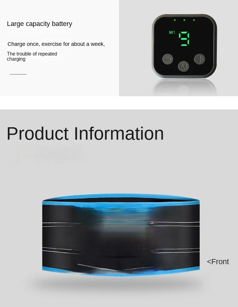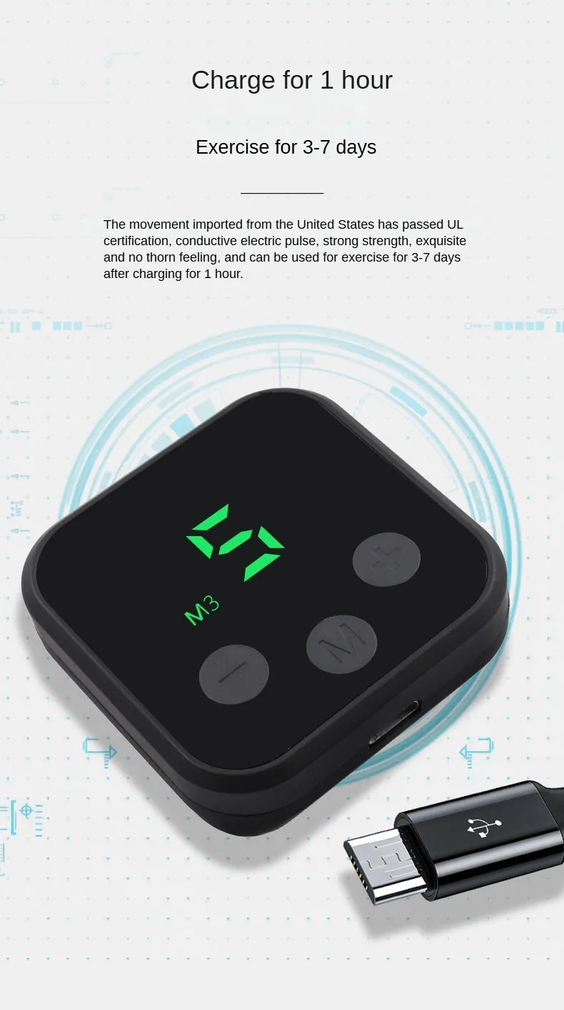—The EMS fitness belt comes with USB cable ,can charge via any USB interface,easy to carry. (Note: Machine can only work when it is attached to your skin tightly,or it will auto-off after few seconds.)