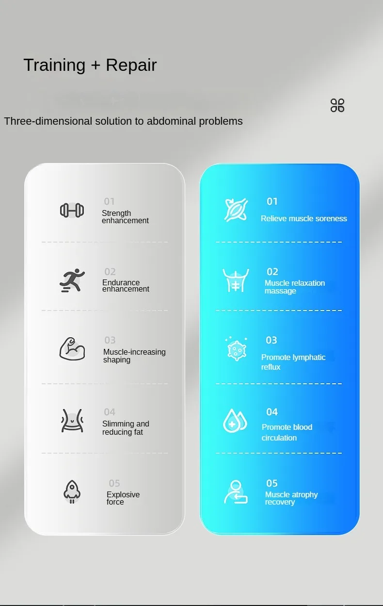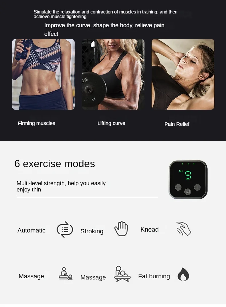 —-This unique double pulse trainer allows muscles to be modeled through high precision micro-discharges to exercise, to achieve the purpose of burnning fat and shaping,effective and safe.